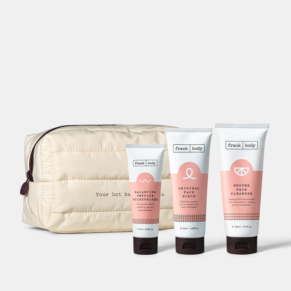 Skin feeling a little two-faced? Get my three-step good-skin-days routine that will simplify skincare and turn on the glow. My gently refining, yet deeply cleansing Enzyme Face Cleanser will be your two servings of fruit a day. A couple of times a week when you need a pep-up, use my best-selling Original Face Scrub to slough away dead skin cells for a radiant finish. Morning and night, my Balancing Peptide Moisturiser will hydrate without the heavy, bulk up your barrier, and plump up the lines. Now that’s a three-course girl-dinner.